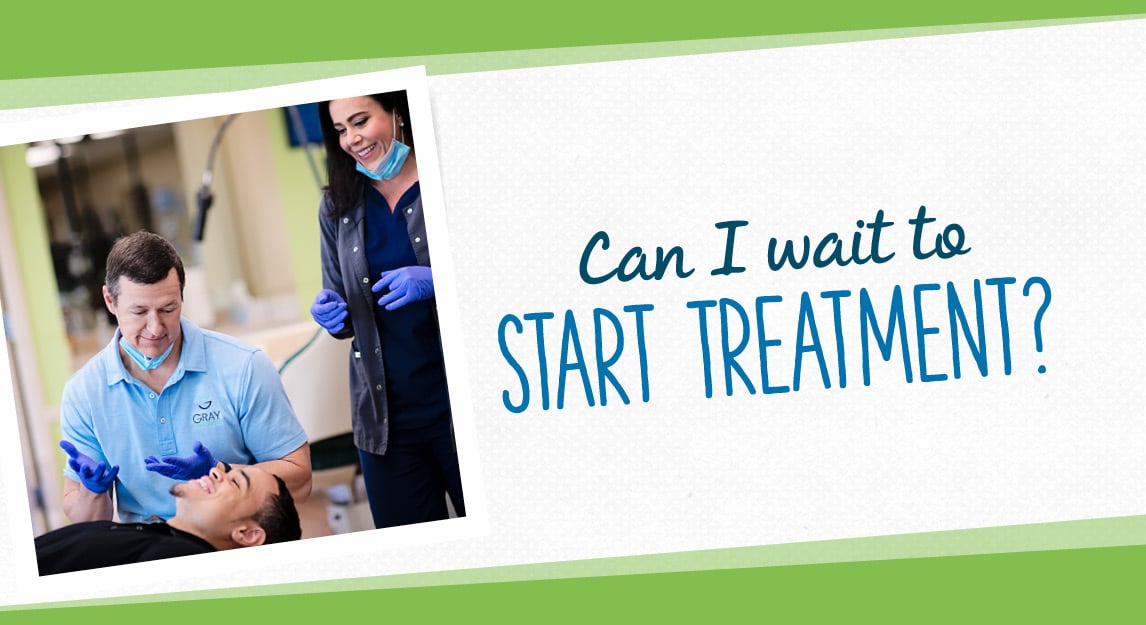 If you decide to wait to start treatment, we will save your treatment plan for when you are ready to begin. However, if you wait a year or more to begin, Dr. Gray may need to re-evaluate your teeth to check for any changes in tooth alignment and bite. Over time, teeth continue to move and change positions, so your treatment plan may need to change as well.